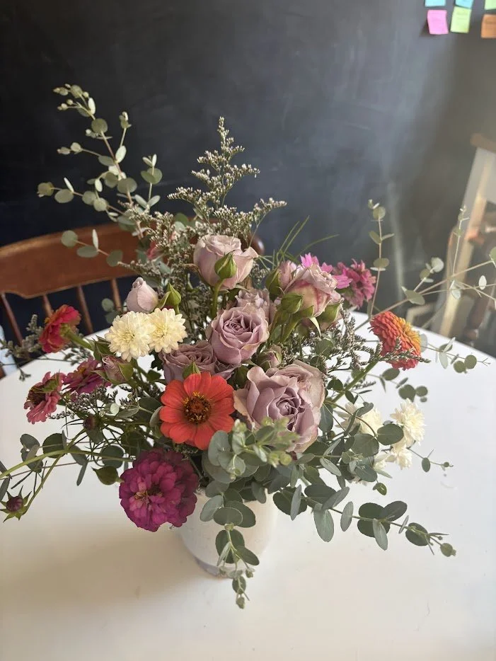 Welcome! We’re a small, woman-run business crafting fresh baked goods and seasonal organic floral bouquets. We bake in our cozy home kitchen and grow all our flowers naturally using pesticide-free methods.